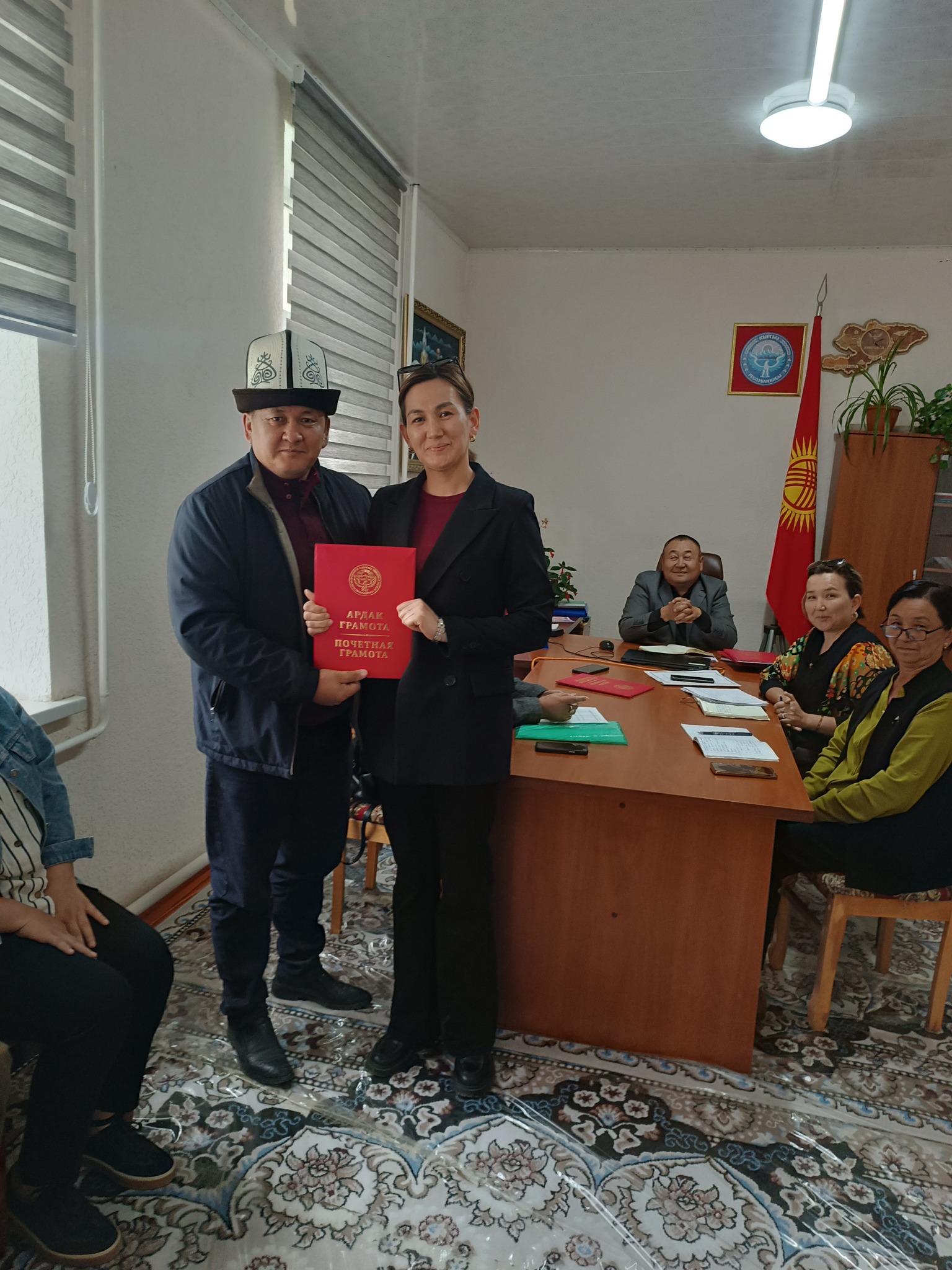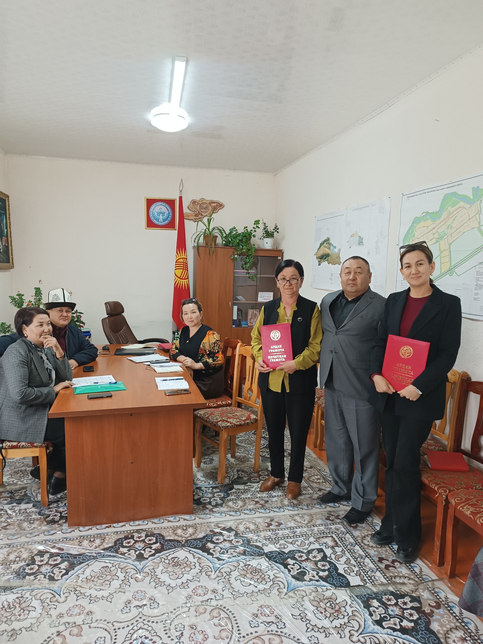 Бугун 2025-жылдын 13-май куну Жан-Булак айыл аймагынын Жан-Булак айыл окмотуно, Нарын райондук статистика башкармалыгы тарабынан кызматкерлери келип, 2022-жылы откорулгон турак жайды каттоого катышкан кызматкерлерге жана айыл өкмөтүно тиешелүү мекемелеринин кызматкерлери дагы катышкандыгына байланыштуу, кызматынын ийгилиги учун АРДАК ГРАМОТАЛАЛАР тапшырылды.