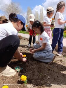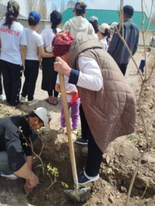 Иш- чарада жалпы ар кандай 100 түп ( кочот ,гулдун турлору) иш-чарага келгендер менен отургузулду.
