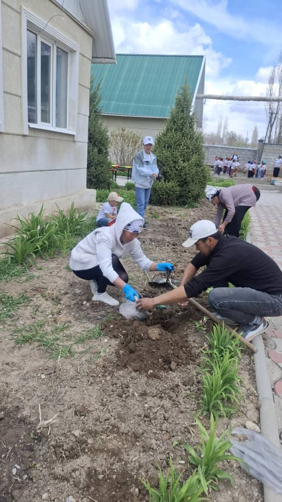 Иш- чарада жалпы ар кандай 100 түп ( кочот ,гулдун турлору) иш-чарага келгендер менен отургузулду.